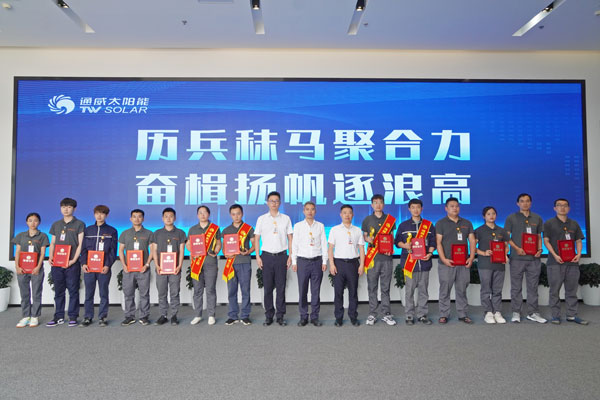 厲兵秣馬聚合力,奮楫揚(yáng)帆逐浪高。5月20日,隨著通威太陽能(成都)有限公司職工技能大賽閉幕式暨“最美工匠”頒獎(jiǎng)儀式的順利舉行,通威太陽能第五屆職工技能大賽正式落下帷幕。通威太陽能中高管團(tuán)隊(duì)出席各公司頒獎(jiǎng)儀式并為獲獎(jiǎng)人員頒獎(jiǎng)。
