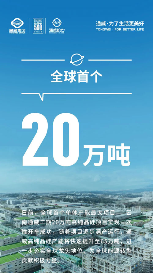作為目前全球首個(gè)、單體產(chǎn)能最大項(xiàng)目,云南通威二期20萬噸高純晶硅項(xiàng)目,產(chǎn)品各項(xiàng)指標(biāo)達(dá)到N型電子級(jí)標(biāo)準(zhǔn),隨著首批N型產(chǎn)品上市,再次彰顯了通威高純晶硅全球領(lǐng)先實(shí)力,為全球能源轉(zhuǎn)型貢獻(xiàn)通威力量,一組圖,帶您讀懂全球首個(gè)20萬噸高純晶硅項(xiàng)目。