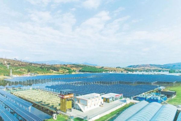 通威“漁光一體”養(yǎng)殖基地。光能便被轉(zhuǎn)化成電能,提高空間利用率的同時,實現(xiàn)光伏發(fā)電與漁業(yè)養(yǎng)殖一體化的有機結(jié)合。