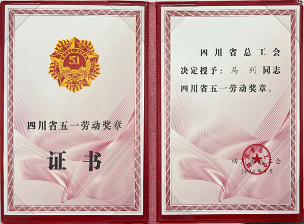 通威太陽能(眉山)有限公司電池四廠工藝部副部長馬列榮獲“四川省五一勞動獎章”表彰