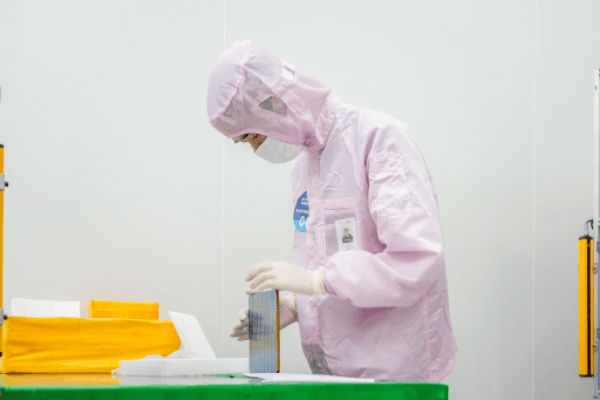 硅片檢驗技能競賽現場,選手正對硅片進行檢驗篩選