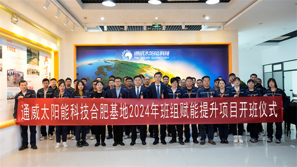 為提升一線班組管理軟實力,助力一線管理人員修煉內(nèi)功,4月17日,通威太陽能科技合肥基地順利開展2024年班組賦能提升項目開班儀式暨首期團隊熔煉活動,大生產(chǎn)體系各部門負(fù)責(zé)人及基層管理團隊代表共計40余人共同出席活動。