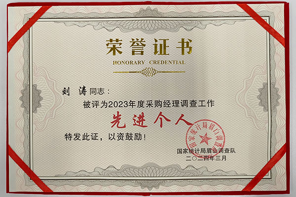 “2023年度眉山市采購經理調查工作先進個人”榮譽證書