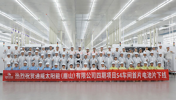 繼通威太陽(yáng)能眉山二期、金堂二期TOPcon技改項(xiàng)目電池片下線后,半個(gè)月內(nèi),通威太陽(yáng)能再傳捷訊。3月26日,通威太陽(yáng)能眉山公司四期項(xiàng)目首片電池片順利下線,通威股份董事長(zhǎng)、CEO劉舒琪,通威太陽(yáng)能總經(jīng)理周華、眉山公司總經(jīng)理助理姚騫及各廠部相關(guān)負(fù)責(zé)人、員工代表共同見(jiàn)證這一里程碑時(shí)刻。