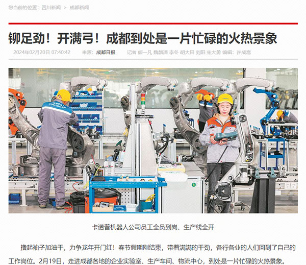 擼起袖子加油干,力爭龍年開門紅!2月20日,成都日報(bào)以“開工!滿弓!”為題,聚焦通威太陽能春節(jié)節(jié)后復(fù)工復(fù)產(chǎn)生產(chǎn)場景,獲得人民網(wǎng)、四川新聞網(wǎng)等多家主流媒體轉(zhuǎn)載報(bào)道。