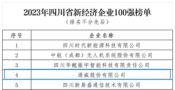 通威榮列“2023年四川省新經(jīng)濟(jì)企業(yè)100強(qiáng)”榜單