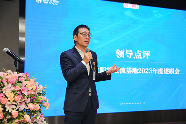 徐濤總首先對雙流基地干部在2023年做出的努力表達感謝,并鼓勵各位干部在2024年制定更高的目標,實現高成長,達到高業績。他指出,全員要培養發散性思維和突破性思維、積累專業知識、加強標準化建設,繼續為通威太陽能在光伏行業的領航發展添磚加瓦。