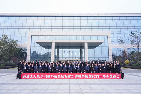 為全面總結2023年管理工作,回顧工作成果、復盤工作不足、制定工作目標,12月27日,通威太陽能財務信息招標體系成功召開2023年度管理干部年終述職會,通威股份總裁助理、通威太陽能合肥公司總經理蕭圣義,通威太陽能總經理周華,通威股份財務總監周斌、通威股份信息總監周勇,通威太陽能副總經理宋梟出席會議并作重要指示,通威太陽能電池及組件財務、招標、信息及財務共享中心團隊全員參會。