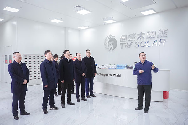 12月25日,四川省委常委、省委秘書長陳煒蒞臨通威太陽能彭山基地參觀調研,眉山市委書記胡元坤、眉山市委副書記趙文嶠陪同調研,通威太陽能總經理周華、彭山基地總經理助理顧峰熱情接待。