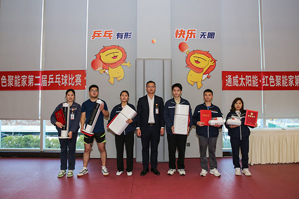 為搭建展示、交流的平臺(tái),宣揚(yáng)積極向上、輕松活力的企業(yè)文化,12月14日,通威太陽能雙流基地紅色聚能家舉辦了第二屆乒乓球比賽,吸引了來自各廠部的40余位乒乓球愛好者參與,通威太陽能雙流基地總經(jīng)理助理徐濤現(xiàn)場觀賽并為獲獎(jiǎng)團(tuán)隊(duì)頒獎(jiǎng)。