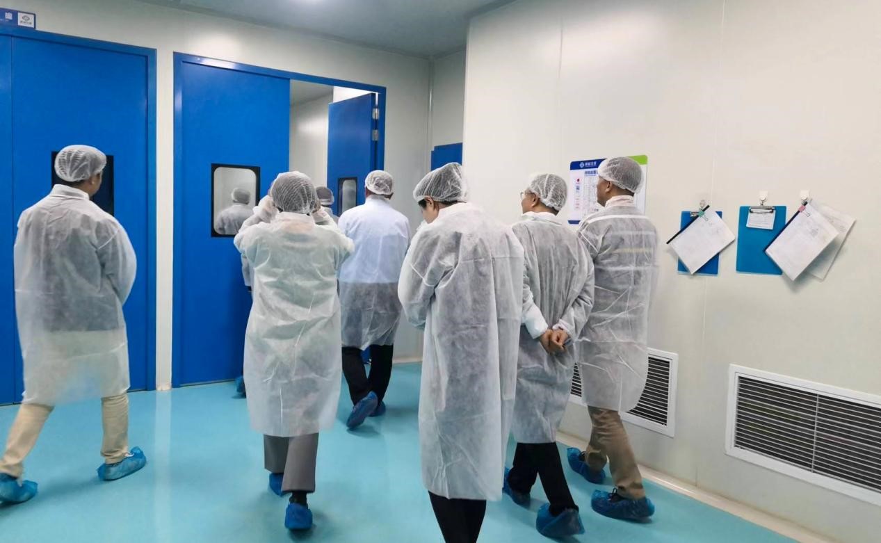 李清總工一行參觀三新藥業GMP車間,了解公司目前擁有通過新版獸藥GMP認證的3個現代化車間、4條工藝先進的生產線,詢問了設備運用、生產工藝、質量管理等方面情況。