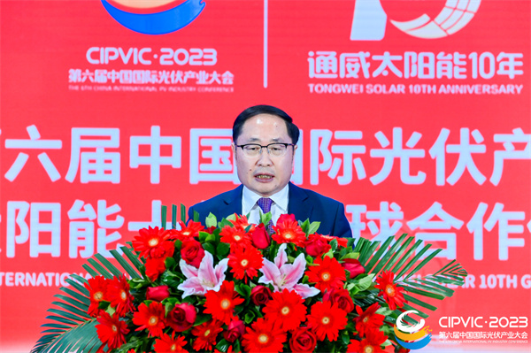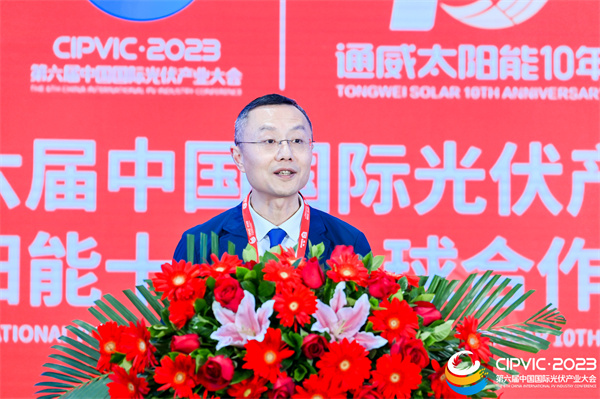 四川省經(jīng)信廳總經(jīng)濟(jì)師袁冰致辭表示,當(dāng)前,綠色發(fā)展為世界帶來(lái)了新的希望和機(jī)遇,成為各國(guó)關(guān)注的焦點(diǎn)。綠色發(fā)展理念和實(shí)踐將滲透到每個(gè)人的生活中,改變我們的生活方式、經(jīng)濟(jì)結(jié)構(gòu)和文化觀念。中國(guó)應(yīng)對(duì)氣候變化的政策與行動(dòng),為全球綠色可持續(xù)發(fā)展貢獻(xiàn)了中國(guó)智慧和中國(guó)方案。2022年,通威集團(tuán)剛度過40年生日,2023年,在新一個(gè)40年的開局之年,通威榮登《財(cái)富》世界500強(qiáng)榜單,實(shí)現(xiàn)四川制造業(yè)世界500強(qiáng)企業(yè)“零”的突破,成為全球光伏行業(yè)首家世界500強(qiáng)企業(yè)。這不僅是企業(yè)發(fā)展的重要?dú)v史節(jié)點(diǎn),也是四川省制造業(yè)、中國(guó)及全球光伏行業(yè)發(fā)展史上的里程碑時(shí)刻。