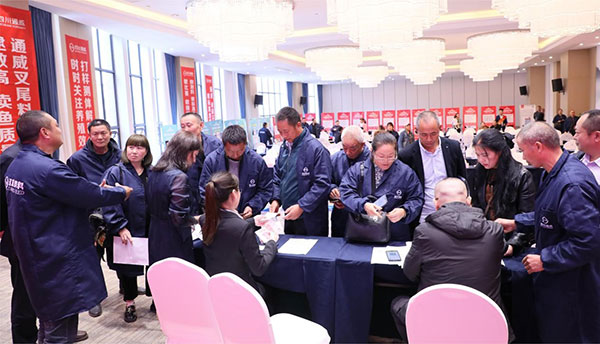 四川通威作為通威發源地,以穩定的產品質量獲得廣大用戶高度肯定。2023年,是通威“好產品年”,邀請用戶、媒體監督官走進通威、深入通威、了解通威,是通威農牧板塊一直在做的工作,我們承諾“原料穩定,質量如一”。會議期間,由四川通威水產料二部經理閆勁宣讀講解活動方案與簽約規則,正式啟動“叉尾越冬0損失”養殖高手招募賽簽約儀式。現場參會養殖戶踴躍報名,參賽簽約率達97%!本次活動將在樂山地區掀起一場圍繞技術交流的養殖比拼,勢必為當地叉尾養殖再次帶來新的突破!