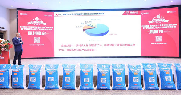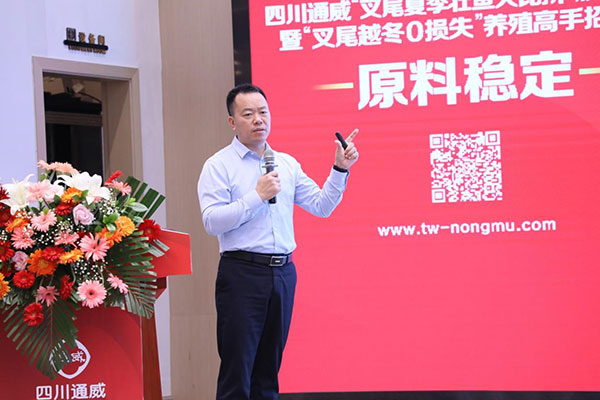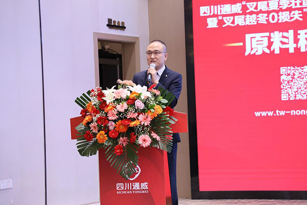 會上,通威農發華西一區總經理兼四川通威總經理彭金鋼作開場致辭。彭總表示,自比賽開始以來,大家共同見證了通威叉尾料的養殖效果,比賽中涌現出一大批叉尾養殖好手、能手、高手,通威產品效果有目共睹。面對魚粉有史以來最高價,通威飼料表現如何?通威以原料穩定,質量如一的產品給出了一份擲地有聲的回答,用好產品,養好魚,好行情才和大家有關系。彭總邀約大家參與“叉尾越冬0損失”養殖高手招募賽,全程使用通威越冬方案,配合越冬養殖技術要點,享受通威百萬投入的大福利,挑戰在2024年春天成功降低叉尾整體發病率,實現“0”損失越冬。