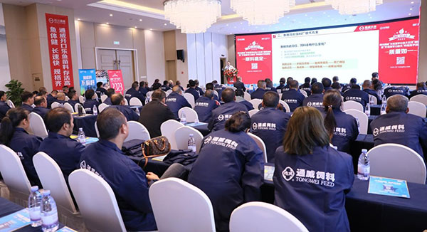 10月13日,四川通威“叉尾夏季壯魚大比拼”頒獎盛典暨“叉尾越冬0損失”養殖高手招募賽在樂山井研圓滿召開。通威農發華西一區總經理兼四川通威總經理彭金鋼、通威農發動物保健研究所水產醫學研發員劉衍鵬、四川通威人行經理白麗芬、水產料二部經理閆勁、水產服務經理黃浩等領導嘉賓應邀出席,當地經銷商與養殖戶朋友103余人全程參與。本次會議在全面總結、表彰“叉尾夏季壯魚大比拼”養殖效果的基礎上,再次聚焦到飼料產品質量與叉尾安全越冬。同時,全面啟動“叉尾越冬0損失”養殖高手招募賽,邀約客戶朋友們繼續監督、見證通威的“好產品”,為養殖把關,為通威代言。