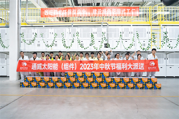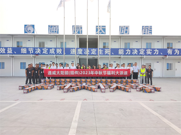 隨著中秋佳節的臨近,為了感謝員工們的辛勤付出,讓大家在節日里感受到公司的關懷和溫暖,9月26日,通威太陽能(組件)各基地先后開展了中秋福利派送活動。