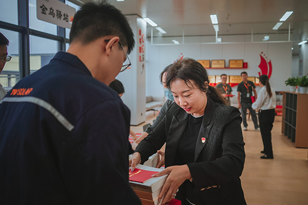 通合新能源支部書記羅曉云總為大家分發書籍