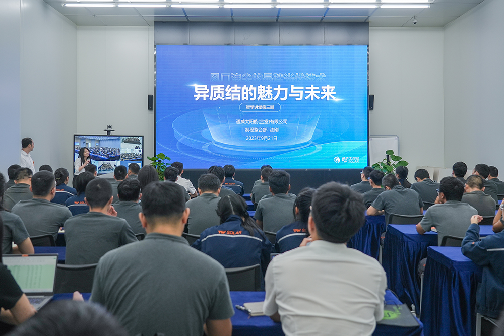 為推動團隊認知迭代,擴寬員工的知識面,滿足員工不斷成長的學習需求,加強員工對行業發展的了解,助力公司快速、穩健的前行。9月21日,通威太陽能人力資源團隊成功開展2023年第三期智學講堂主題公開課,本次課程特邀復旦大學高分子化學與物理博士、金堂基地制程整合部負責人漆剛主講,為通威同仁帶來更專業、更深度、更前沿的行業知識分享,各基地線上線下共計800余人參加。