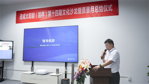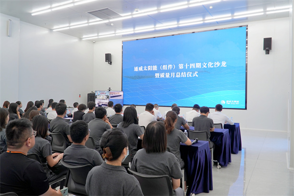 為提升員工質(zhì)量意識,營造人人關(guān)注質(zhì)量的濃厚企業(yè)文化氛圍,9月21日,通威太陽能(組件)光伏學習中心順利開展第十四期文化沙龍暨質(zhì)量主題月總結(jié)儀式。通威股份總裁助理、通威太陽能(合肥)有限公司總經(jīng)理蕭圣義攜各基地部門負責人及員工代表共計200余人參與本次活動。