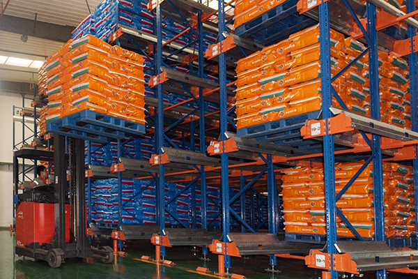 產品通過智能穿梭小車送入貨架