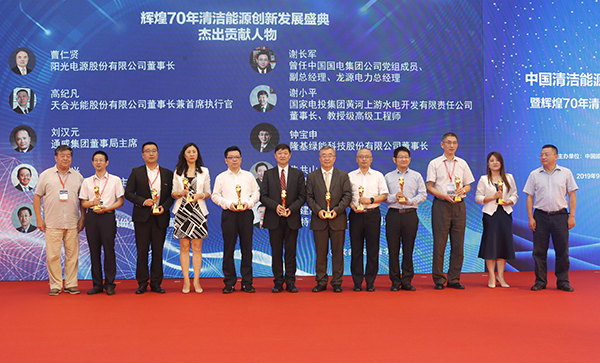 9月4日至6日,為期三天的2019中國國際清潔能源博覽會暨中國智慧能源產(chǎn)業(yè)峰會在杭州國際博覽中心隆重舉行。商務部原副部長陳健,中國智慧能源產(chǎn)業(yè)聯(lián)盟常務副理事長、國家電力投資集團黨組書記、董事長錢智民,國務院國有資產(chǎn)監(jiān)督管理委員會辦公廳(黨委辦公室)副主任范建林,中國光伏行業(yè)協(xié)會副理事長兼秘書長王勃華,國務院原參事、中國可再生能源學會理事長石定寰,國家應對氣候變化戰(zhàn)略研究和國際合作中心首任主任李俊峰等嘉賓出席開幕式,通威集團副總裁胡榮柱出席本次峰會。會議期間舉行了“致敬七十年?清潔能源創(chuàng)新發(fā)展盛典”,通威集團董事局劉漢元主席榮膺“中國清潔能源杰出貢獻人物”殊榮,通威集團榮獲“最具卓越貢獻企業(yè)獎”。
