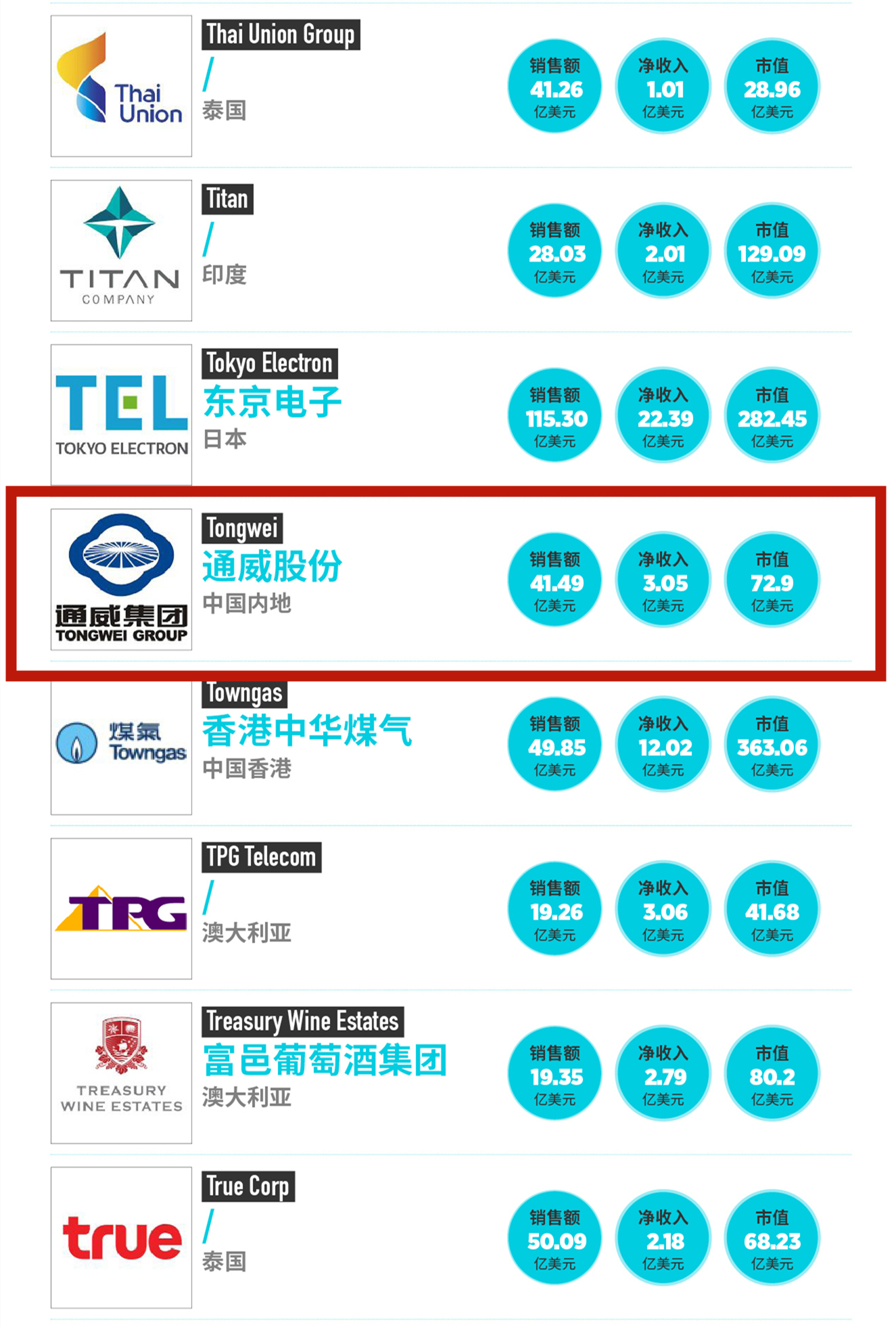 通威股份榮列福布斯亞洲大型上市企業(yè)200強榜單