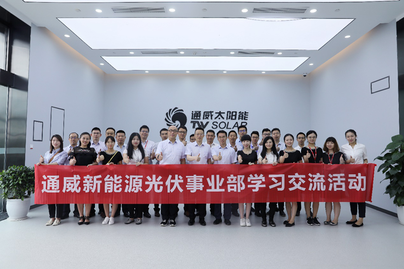 當(dāng)日上午,陳總率光伏事業(yè)部中高管團(tuán)隊(duì)赴通威太陽(yáng)能(成都)有限公司學(xué)習(xí)交流。通威太陽(yáng)能(成都)有限公司總經(jīng)理謝泰宏熱情接待。