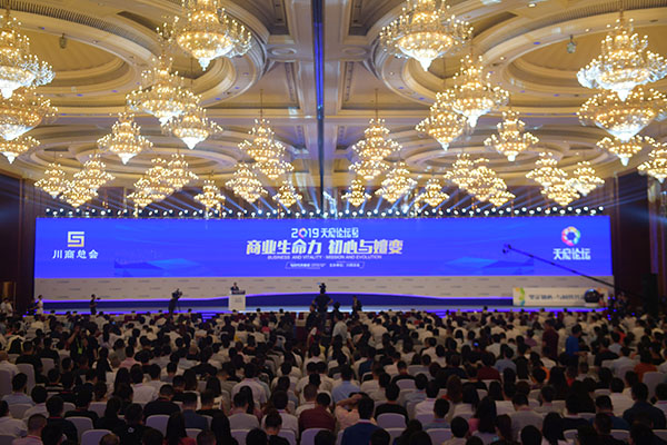 為弘揚川商精神、凝聚川商力量、提振川商信心、打造川商品牌,6月26日,2019川商發展大會開幕式暨川商發展項目合作協議簽署儀式在成都隆重舉行。來自境內外的1500多名川商、知名企業和商(協)會負責人齊聚蓉城,共敘桑梓之情、共謀發展新篇。四川省委書記彭清華出席儀式并致辭,省委副書記、省長尹力主持,省政協主席柯尊平,全國工商聯黨組副書記、副主席樊友山出席。萬達集團董事長、川商總會名譽會長王健林等知名企業家參會。作為大會重點活動,以“商業生命力——初心與嬗變,與時代共奮進”為主題的2019天府論壇順利舉行,川商總會聯席會長、輪值會長、通威集團董事局劉漢元主席致辭。
