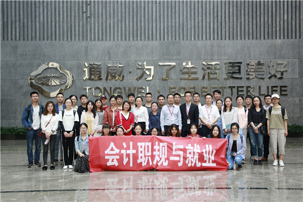 4月23日,西南財經大學會計學院共計40余名師生到訪通威股份管理總部交流參觀,通威股份人力資源部副部長李凌峰、財務部副部長胡永權、財務專員王彬及西南財經大學畢業的通威員工代表熱情接待。