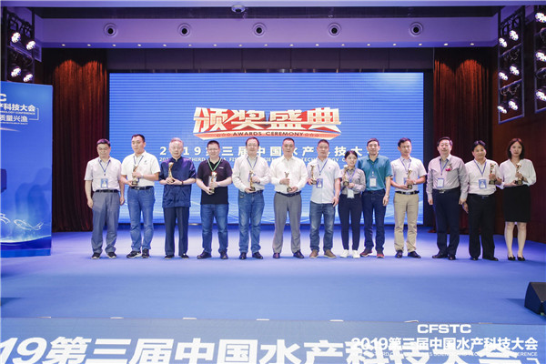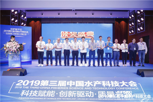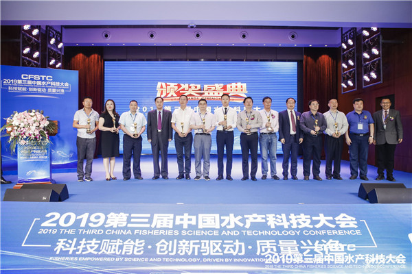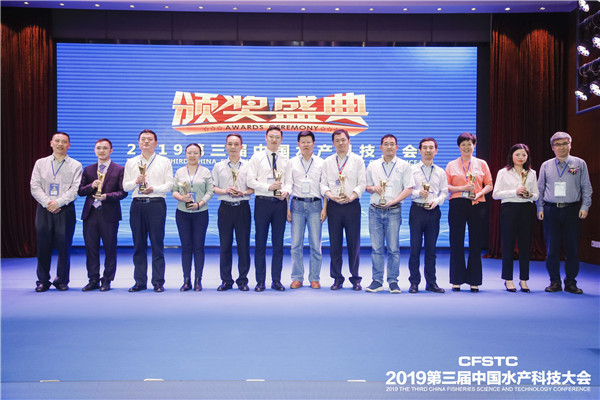 17時30分 大會迎來了激動人心的頒獎環節,現場公布了“2019中國水產行業·十佳創新模式獎”、“2019中國水產行業·十大科技進步獎”、“2019中國水產行業·十大杰出成果獎”、“2019中國水產行業·十大卓越貢獻獎”四大獎項。