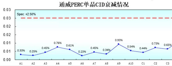 一線組件大廠對通威PERC單晶CID衰減測試情況