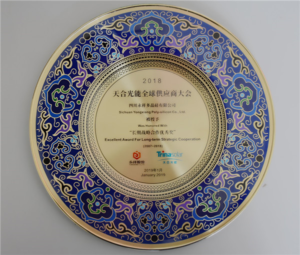 天合光能作為光伏產(chǎn)業(yè)的領(lǐng)軍企業(yè),在全球范圍、行業(yè)內(nèi)外具有重要影響力和號召力。雙方自2007年建立合作關(guān)系以來,始終都秉承“互利共贏、相互成就”的理念精誠合作,始終如一,建立起了命運(yùn)共生的戰(zhàn)略合作伙伴關(guān)系,歷經(jīng)市場的考驗、時間的檢驗。在長期的合作中,永祥多晶硅憑借優(yōu)秀的產(chǎn)品質(zhì)量、穩(wěn)定的供應(yīng)、高水平的售后服務(wù)、高效的溝通、真誠的合作理念多次獲得天合光能的高度認(rèn)可和評價,連續(xù)獲評天合光能年度最佳供應(yīng)商,并在2018年度獲評“長期戰(zhàn)略合作優(yōu)秀獎”殊榮。