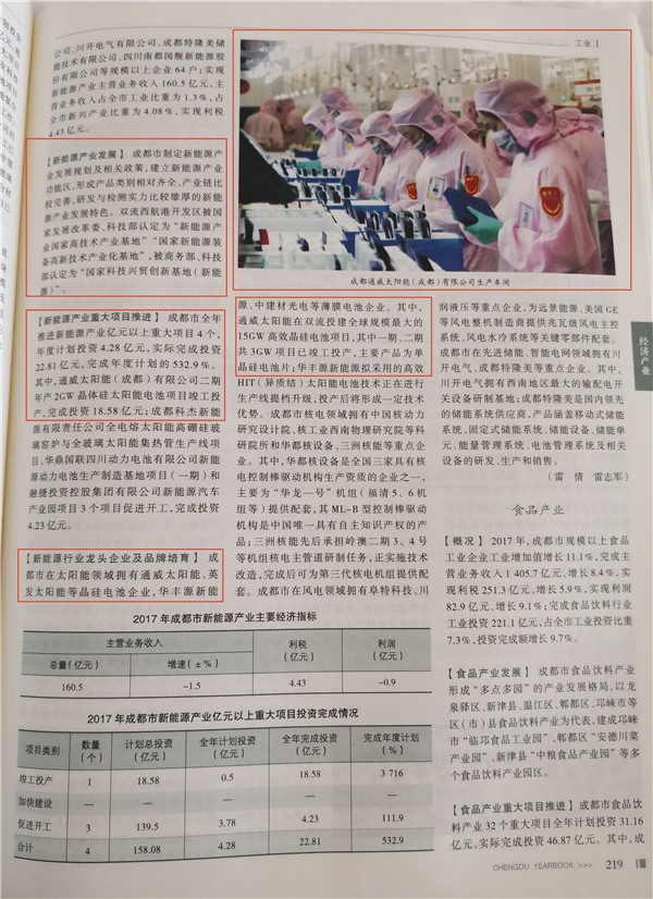 通威太陽能成都公司榮列2018年卷《成都年鑒》