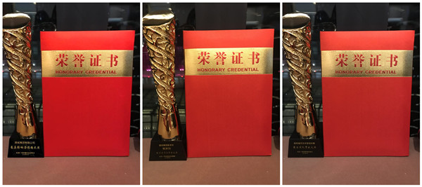 “最佳團隊貢獻(xiàn)大獎”三項大獎獲獎證書及獎杯