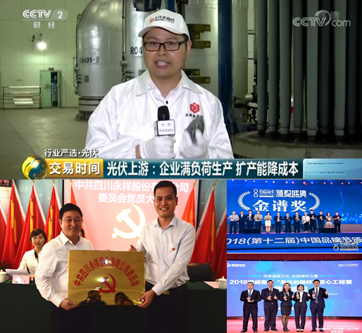 1月3日,永祥多晶硅榮獲四川省科技進步二等獎;1月22日,四川永祥股份有限公司榮獲“國家高新技術企業”稱號;9月21日,永祥多晶硅榮獲四川省專利獎一等獎;11月20日,四川省民營經濟健康發展大會上,永祥再次榮獲“優秀民營企業”重磅榮譽;11月23日,在樂山市工業暨民營經濟健康發展大會上,通威股份董事、永祥股份董事長兼總經理段雍應邀出席會議并作主題發言,永祥股份榮獲“新認定的國家高新技術企業2017年度稅收入庫收入首上臺階獎金50萬元”獎勵;此外,11月,永祥多晶硅先后獲得2018年度“光能杯”CREC評選年度“優秀光伏材料企業”、“中國好光伏”2018年度“最佳光伏材料供應商”、2018年“北極星杯”“最受歡迎十大光伏原材料及輔料品牌”、2018“科維杯”OFweek2018“卓越光伏材料商”等殊榮;2018年,段雍董事長先后獲評“年度環保人物”、“優秀中國特色社會主義事業建設者”稱號。這些榮譽的取得,有力地彰顯了公司的影響力和發展活力。