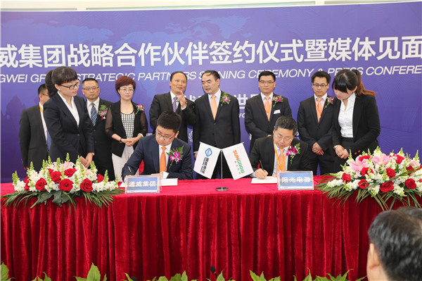 2015年4月28日,通威亮相SNEC第九屆國際太陽能產業及光伏工程(上海)展覽會暨論壇,并隆重舉行“通威集團戰略合作伙伴簽約儀式”,通威集團先后與多家公司達成合作,打造優勢互補、資源共享、共同發展的戰略合作伙伴關系。
