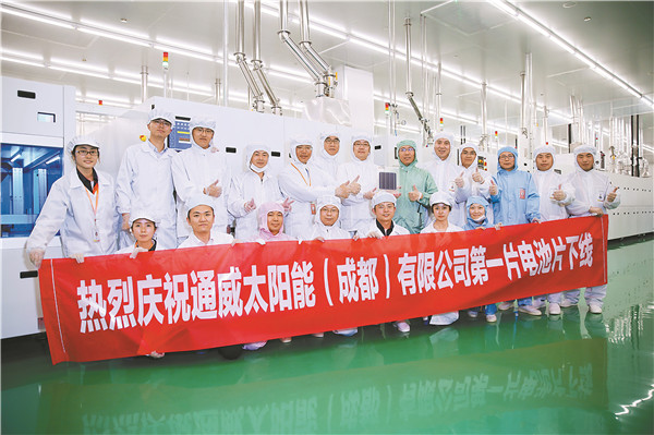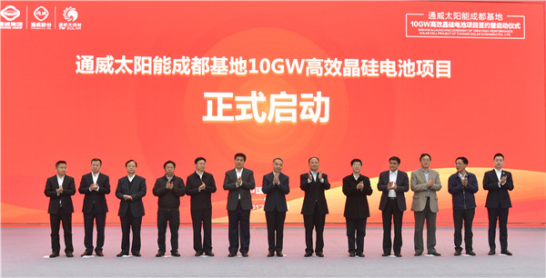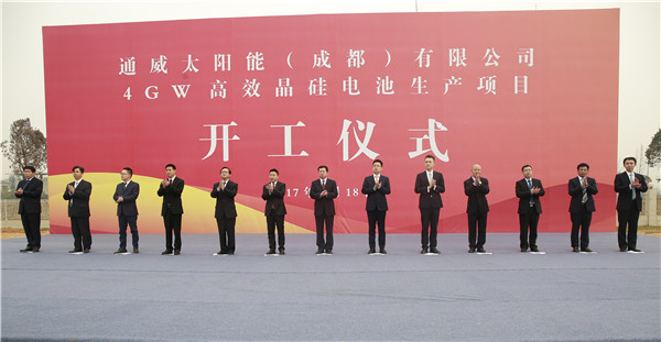 2017年2月18日,通威太陽能(成都)有限公司4GW高效晶硅電池生產項目開工儀式隆重舉行。雙流一期1GW高效晶硅電池項目僅用7個月完工,3個月達標達產,成為全球建設速度最快、自動化程度最高、單車間產能規模最大的高效晶硅電池項目。
