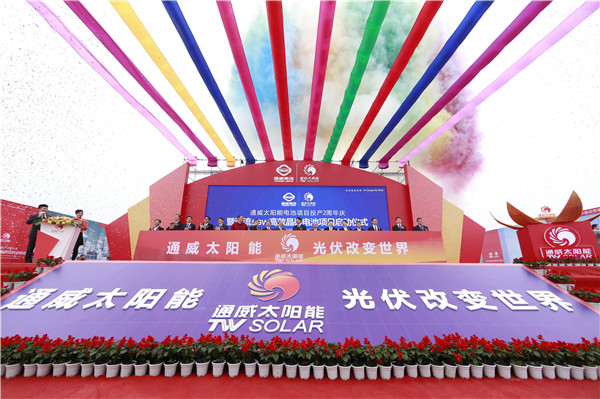2015年11月18日,通威太陽能電池項目投產2周年慶暨雙流5GW高效晶硅電池項目啟動儀式隆重舉行,通威太陽能正式開啟合肥、成都兩地“雙城時代”。