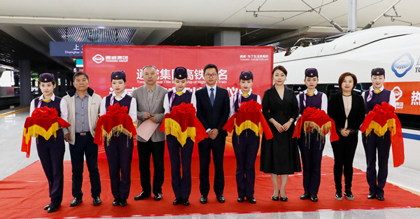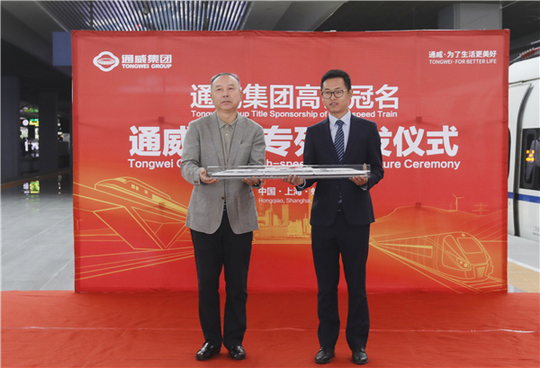 10月10日上午,我國京滬高鐵“通威號”專列首發儀式在上海虹橋高鐵站成功舉行。8時15分,印有“通威集團 為了生活更美好”品牌標識的高鐵列車隆重發車!未來一年,“通威號”專列將每天往返于京滬,穿越京津冀和長三角兩大經濟區,對外展現通威國際化品牌形象。承載著通威綠色發展理念和能源轉型重大使命的“通威號”由此載譽啟程!