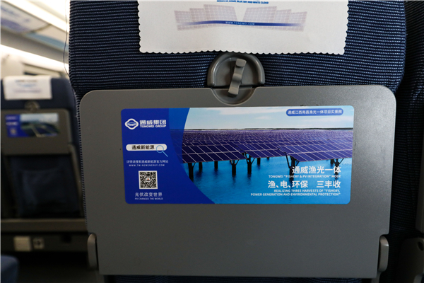 高鐵專列內的通威“漁光一體”展示
