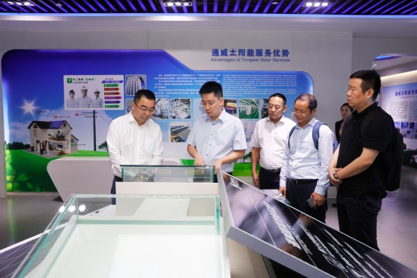 張勝書記一行首先參觀了通威集團(tuán)體驗(yàn)中心,詳細(xì)了解了通威綠色農(nóng)業(yè)、新能源雙主業(yè)發(fā)展現(xiàn)狀及通威太陽能發(fā)展規(guī)劃、市場(chǎng)經(jīng)營情況,并對(duì)通威36年來的發(fā)展成果及通威太陽能幾年內(nèi)取得的優(yōu)異成績給予了高度評(píng)價(jià)。