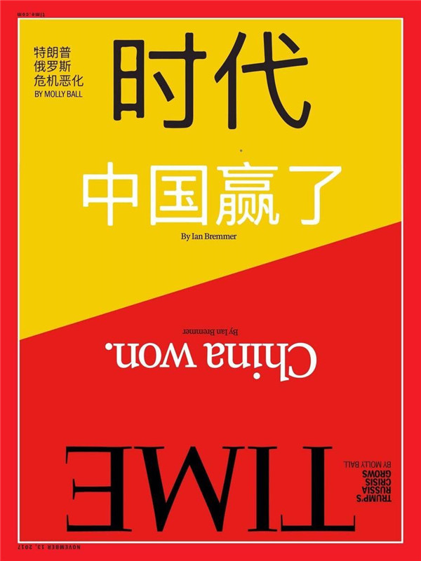 2017年11月的《時代》周刊雜志封面用中文和英文兩種語言寫上“中國贏了”