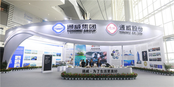 開幕式期間,通威集團副總裁胡榮柱受邀出席《定力與奮進:中國制造與中國品牌》為主題的高峰對話,通威股份光伏事業部總裁陳星宇作《通威“漁光一體”助推綠色發展》主題演講。