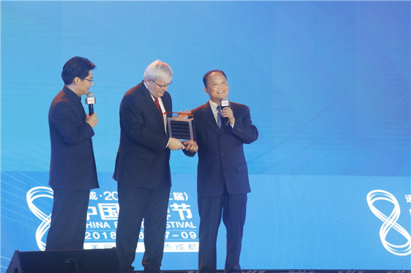 在劉漢元主席的帶領下,通威在實現自身快速發展的同時,一直堅持推動以光伏為代表的可再生能源發展,推進全球能源革命進程,并積極參與社會公益事業、光彩事業和思源工程,展現了高度的社會責任感與使命擔當。會上,陸克文先生為劉漢元主席授予了“2018(第十二屆)中國品牌節最具社會責任企業領袖”牌匾。