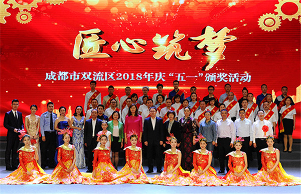 近日,2018年雙流區慶祝國際五一勞動節“匠心筑夢”頒獎活動于雙流棠湖中學舉行。雙流區委常委、區總工會主席韓超,區人大常務委員會副主任鮮明,區政協副主席李宏坤,區總工會黨組書記、常務副主席邱良芳,以及區人社局、組織部、衛計局等領導出席活動。本次活動上還為通威太陽能成都公司計劃部葉志強、廠務部王剛頒發了“雙流工匠”的榮譽證書,并分別向通威太陽能成都公司以及公司工會主席、行政部部長王耀頤授予“活力工會”、“貼心主席”稱號。