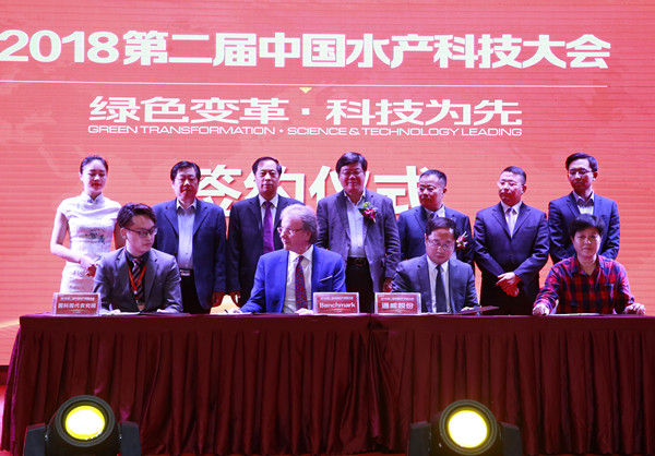 為樹立和嘉獎行業(yè)標(biāo)桿,激活創(chuàng)新動能,大會隆重舉行了“2018中國水產(chǎn)科技大會頒獎盛典”。由水產(chǎn)權(quán)威機(jī)構(gòu)與企業(yè)代表組成的評委團(tuán),根據(jù)科技創(chuàng)新、行業(yè)貢獻(xiàn)等方面進(jìn)行綜合評比,最終評選并現(xiàn)場頒發(fā)了“年度突出科技創(chuàng)新獎”、“年度杰出成果轉(zhuǎn)化獎”、“年度卓越貢獻(xiàn)獎”、“年度最佳商業(yè)模式獎”四大重磅獎項(xiàng)。大會期間,通威股份嚴(yán)虎副董事長,英國BENCHMARK控股有限公司董事、比利時英偉水產(chǎn)集團(tuán)全球總裁Philippe Leger,國科現(xiàn)代農(nóng)業(yè)產(chǎn)業(yè)科技創(chuàng)新研究院國際合作交流中心總監(jiān)助理任意達(dá),河北鑫海水產(chǎn)生物技術(shù)有限公司董事長許圣鈺分別代表四家企業(yè)上臺,共同簽署《四方戰(zhàn)略合作意向框架協(xié)議》,攜手共促我國水產(chǎn)科技創(chuàng)新,推動行業(yè)快速發(fā)展!