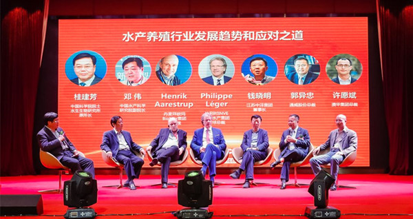 下午4時(shí)35分 ,在中國科學(xué)院院士、水生生物研究所原所長桂建芳的主持下,中國水產(chǎn)科學(xué)研究院副院長鄧偉,丹麥BioMar集團(tuán)副總裁Henrik Aarestrup,英國BENCHMARK控股有限公司董事、比利時(shí)英偉水產(chǎn)集團(tuán)全球總裁Philippe Leger,江蘇中洋集團(tuán)董事長錢曉明,通威股份郭異忠總裁,澳華集團(tuán)總裁許愿斌圍繞“水產(chǎn)養(yǎng)殖行業(yè)發(fā)展趨勢(shì)和應(yīng)對(duì)之道”進(jìn)行了熱烈討論與分享。