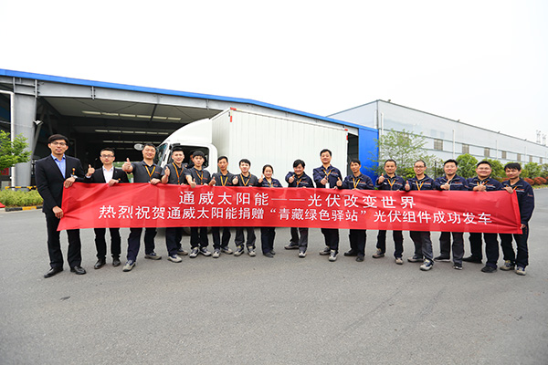 項目每個環節的參與人員都絲毫不敢懈怠,一再確認貨物和運輸情況。通威太陽能公司相關負責人表示,公司能參與到本次的捐贈活動感到很榮幸,希望通過這次組件的捐贈,讓“青藏綠色驛站”的志愿者們感受到來自通威人的愛心與真情,讓通威的清潔能源照亮更多更遠的地區,讓生活更美好。