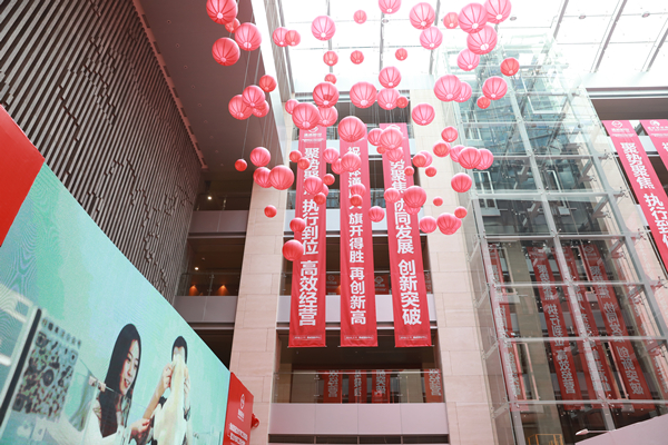 一道玻璃大門將寒冬隔絕在外,偶爾灌入的寒風也被一片紅色的新春氣氛消解于無形。拉著行李箱匆匆歸家的游子甫一進門,就得到來自集團辦公室同事們熱切的歡迎和溫馨的服務。