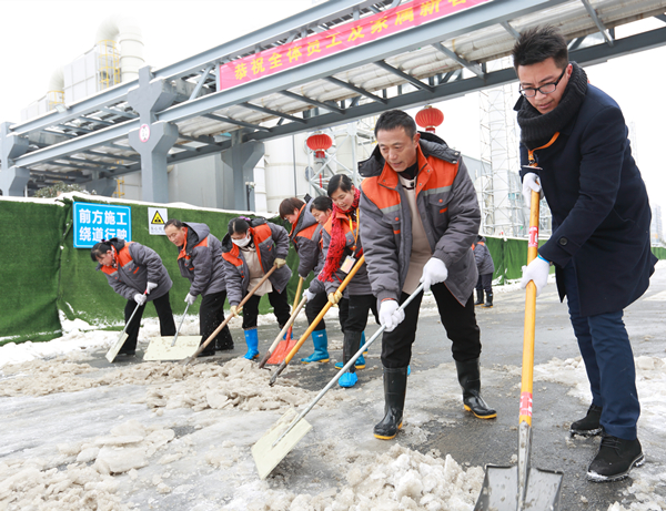 1月26日上午10時,合肥公司各部門共計一百余人分散到廠區主干道、食堂通道等員工必經道路,分頭作業,責任區域,清除道路積雪,清理道路安全隱患。